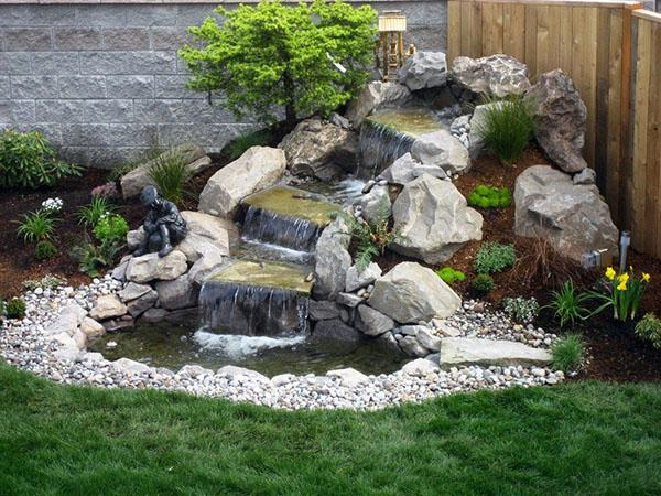 - Для стенок подойдут гладкие камни или специальные бетонные элементы, которые помогут удерживать воду.