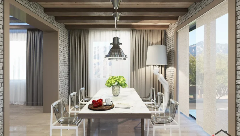 Текстуры играют важную роль. Использование мягких тканей на стульях, красивых скатертей и свежих цветов поможет оживить интерьер и сделать его более приветливым. Такие детали важны, потому что они создают визуальный комфорт и ощущение тепла.
